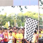 Wakil Wali Kota Metro, Drs. H. Qomaru Zaman, MA, melepas 725 peserta Runniversary Ruang 144 Singing Class Tahun 2025 yang digelar Taman Merdeka Kota Metro, Minggu (12/01/2025).